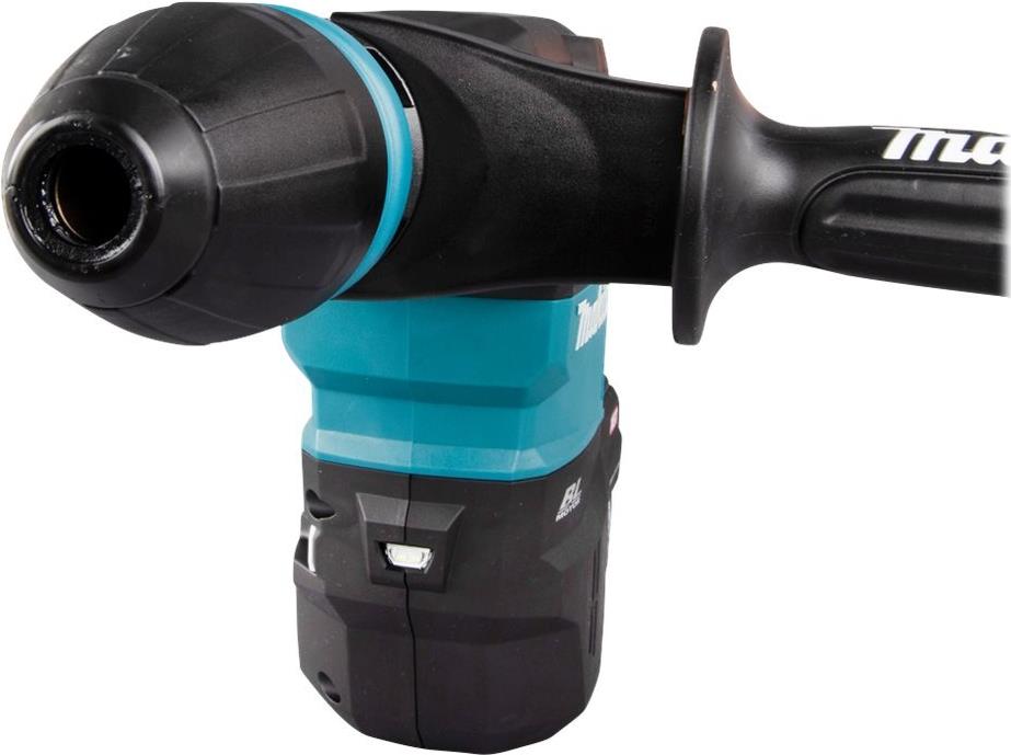 Für staubarmes Arbeiten kann mithilfe des passenden Absaug-Sets von Makita eine Staubabsaugung angeschlossen werden. Der Akku-Stemmhammer HM001G ist außerdem mit dem Auto-start Wireless System (AWS) kompatibel. Bei diesem wird beim Start der Maschine via Bluetooth der angeschlossene Staubsauger automatisch angeschaltet. Eine leuchtstarke Doppel-LED mit Vor- und Nachglimmfunktion sorgt für einen gut ausgeleuchteten Arbeitsplatz.