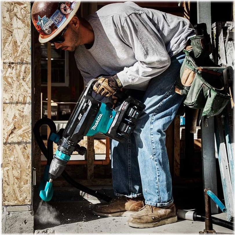 Für staubarmes Arbeiten kann mithilfe des passenden Absaug-Sets von Makita eine Staubabsaugung angeschlossen werden. Der Akku-Stemmhammer HM002G ist außerdem mit dem Auto-start Wireless System (AWS) kompatibel. Bei diesem wird beim Start der Maschine via Bluetooth der angeschlossene Staubsauger automatisch angeschaltet.