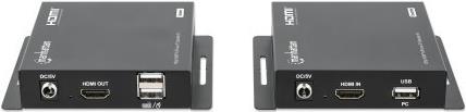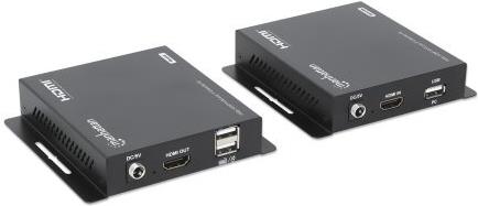 Das Manhattan Extender Kit bietet eine effiziente Lösung zur Verlängerung von KVM- und USB-Verbindungen mit einer maximalen Übertragungsreichweite von 120 m. Dieser zuverlässige kabelgebundene Extender ist für die Wand- oder Deckenmontage konzipiert und bietet eine hohe Leistung mit Unterstützung für Videoauflösungen bis zu 1920 x 1080 bei einer Bildwiederholfrequenz von 60 Hz. Das Kit entspricht verschiedenen Standards, darunter Plug-and-Play, FCC, RoHS, REACH und UKCA, und lässt sich somit problemlos in bestehende Setups integrieren. Ausgestattet mit einer USB-Schnittstelle für Tastatur und Maus ermöglicht der Extender eine nahtlose Konnektivität und unterstützt gleichzeitig erweiterte Funktionen wie 7.1-Kanal-Audio und LPCM. Dank seines robusten Metallgehäuses arbeitet er effizient in einer Vielzahl von Umgebungsbedingungen, von 0 °C bis 50 °C, bei einer Luftfeuchtigkeit von 5 % bis 90 % (nicht kondensierend). Dies erhöht die Flexibilität und Zugänglichkeit in jedem Arbeitsbereich.