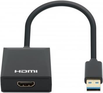 Dieser aktive Manhattan HDMI-Adapter schließt Notebook oder Computer über deren USB-A-Port an einen Monitor, Fernseher oder Projektor mit HDMI-Schnittstelle an. Ersetzen Sie Ihr Notebookdisplay durch einen größeren Bildschirm oder erweitern Sie es für Multitasking auf ein zweites Display. Eine preiswerte und praktische Lösung zur Erweiterung der Videoausgabefähigkeiten Ihres Macs oder PCs. Der Adapter funktioniert wie eine externe Grafikkarte, d.h. Sie können mehrere Adapter an Ihre USB-A-Ports anschließen und so weitere Bildschirme hinzufügen.