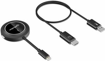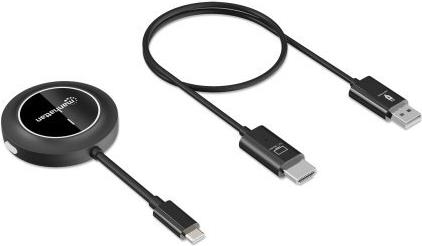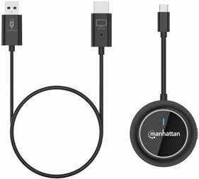 Das Manhattan Display Presentation Kit bietet eine nahtlose Möglichkeit, Video- und Audioinhalte drahtlos zu übertragen, und unterstützt Auflösungen von bis zu 1920 x 1080 bei einer V-Sync-Rate von 60 Hz. Dank der Kompatibilität mit verschiedenen Streaming-Technologien wie Apple AirPlay und Google Cast ist es vielseitig einsetzbar, sowohl für Präsentationen als auch für die Wiedergabe von Multimedia-Inhalten. Ausgestattet mit einer Pairing-Taste für die einfache Verbindung von Geräten, verfügt dieser Wireless Extender über eine robuste Reichweite und kann somit in einer Vielzahl von Innenräumen eingesetzt werden. Mit einer maximalen Übertragungsreichweite von 30 m bleibt die Leistung des Display-Kits auch bei größeren Entfernungen zwischen den Geräten erhalten, sodass es sich ideal für verschiedene Szenarien von Meetings bis hin zur Heimunterhaltung eignet.