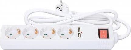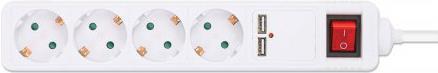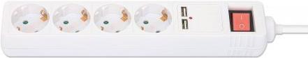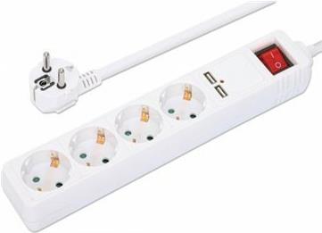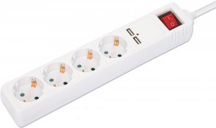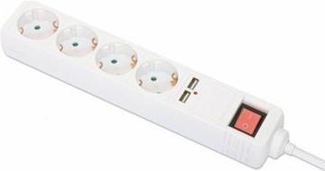 Vervielfachen Sie einen einzelnen Stromanschluss für Drucker, PC, Router, TV und andere Elektrogeräte mit dieser Mehrfachsteckdosenleiste von Manhattan. In der nach rechts gewinkelten Anordnung finden vier sperrige Stecker bequem nebeneinander Platz. Zudem können in den beiden USB-A-Ports zwei mobile Geräte wie Handys oder Tablets mit einer geteilten Ausgangsleistung von 2,1 A geladen werden. Erhöhter Berührungsschutz der Kontakte garantiert Sicherheit bei Kindern im Haushalt. Das robuste Kunststoffgehäuse sorgt für helle, saubere Optik. Ein beleuchteter Netzschalter lässt Sie die komplette Leiste je nach Bedarf ein- oder ausschalten.