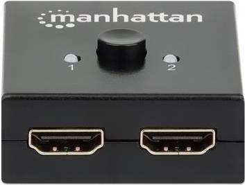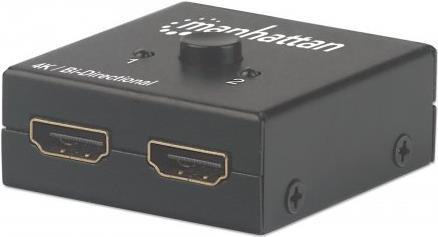 Der bi-direktionale 4K 2-Port HDMI-Splitter/Switch von Manhattan ist die flexible 2-in-1-Lösung für Ihre 4K-Anwendungen: Verteilen Sie mit der Splitter-Funktion das Signal einer Videoquelle auf zwei Displays oder schalten Sie mit der Switch-Funktion zwischen zwei Videoquellen zum Bespielen eines Displays um. Bei Bild- und Tonqualität gehen Sie mit diesem Splitter-/Switch-Multitalent keine Kompromisse ein. 4K-/UHD-Bildsignale werden verlustfrei übertragen und das mit 3D-Unterstützung sowie Audio in LPCM, DTS und Dolby TrueHD. Die Installation ist kinderleicht: Schließen Sie einfach die HDMI-Kabel (nicht im Lieferumfang) an das Gerät an und verwenden Sie es wie gewünscht. Die Stromversorgung funktioniert direkt über den HDMI-Port, es wird kein externes Netzteil benötigt. Weitere Hard- oder Softwarekonfiguration ist nicht notwendig.