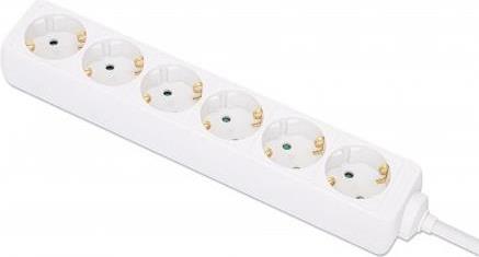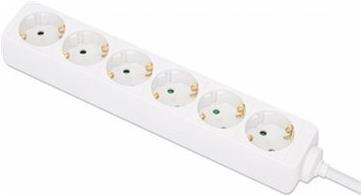 Vervielfachen Sie einen einzelnen Stromanschluss für Drucker, PC, Router, TV und andere Elektrogeräte mit dieser Mehrfachsteckdosenleiste von Manhattan. In der nach rechts gewinkelten Anordnung finden sechs sperrige Stecker bequem nebeneinander Platz. Erhöhter Berührungsschutz der Kontakte garantiert Sicherheit bei Kindern im Haushalt. Das robuste Kunststoffgehäuse sorgt für helle, saubere Optik.