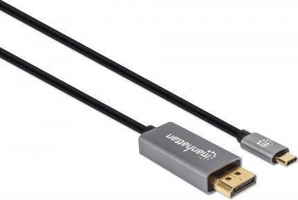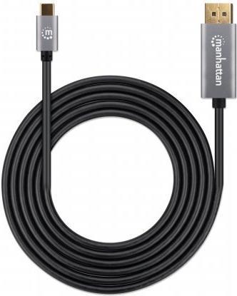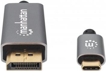 MANHATTAN 8K@60Hz USB-C auf DisplayPort 1.4 Adapterkabel USB-C-Stecker auf DisplayPort-Stecker, 2 m, unterstützt 4K@120Hz, vergoldete Kontakte, schwarz (354844)