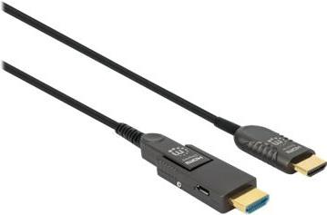 Das aktive optische High-Speed-HDMI-Kabel mit abnehmbarem Stecker von Manhattan ist die perfekte Lösung für die Übertragung eines HDMI-Signals an einen gewünschten Ort, z. B. ein Klassenzimmer, einen Konferenzraum, eine Gesundheitseinrichtung, eine Messe oder eine andere kommerzielle Umgebung. Die Active Optical Cable (AOC)-Technologie bietet mehrere Vorteile gegenüber herkömmlichen HDMI-Kabeln. Sein kleinerer Kabeldurchmesser sorgt für mehr Flexibilität und Beweglichkeit bei der Installation in engen Räumen und verfügt über einen Micro-HDMI-Stecker vom Typ D für eine engere Verbindung durch Wände. Sie können den mitgelieferten HDMI-Typ-A-Adapter für eine herkömmliche, vollwertige Verbindung zwischen Quelle und Bildschirm anschließen und Ihre Videos in gestochen scharfen, flüssigen 4K@60Hz genießen. Seine Konstruktion aus Glasfasersträngen eliminiert das Risiko von elektromagnetischen/radiofrequenten Störungen, um die beste Leistung, Stabilität und Zuverlässigkeit bei der Verwendung zu gewährleisten. Der AOC ist eine ausgezeichnete Wahl für Umgebungen mit starken Interferenzen, wie z. B. Rechenzentren, Operationssäle, DJ-Events oder Produktionsstätten, in denen eine hohe Auflösung und eine konsistente Anzeige entscheidend sind.