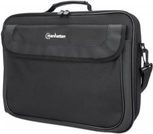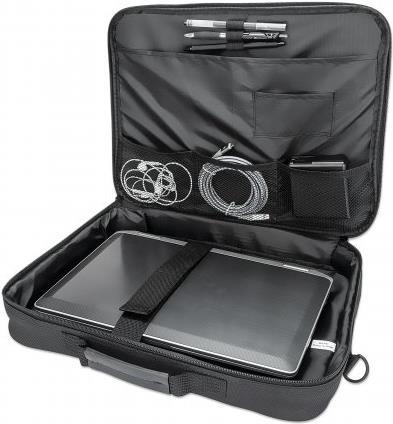 MANHATTAN Cambridge Clamshell Notebooktasche 15,6 Für Notebooks bis 15.6", "Clamshell"-Design lässt sich vollständig aufklappen, üppig gepolstertes Notebookfach, Staufächer an Front- und Rückseite sowie zusätzliche Innenfächer, Schultergurt, Tragegriff, schwarz (439947)