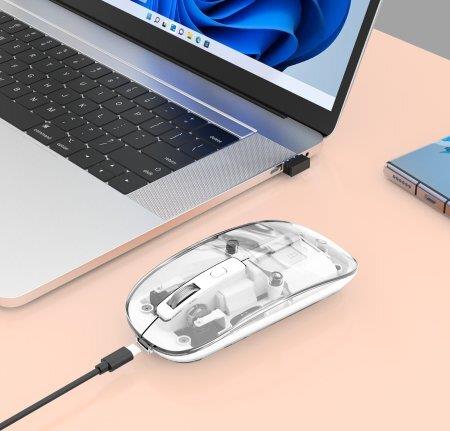 Die Manhattan-Maus von IC Intracom bietet kabellosen Komfort und ergonomisches Design. Durch ihre beidhändige Form ist sie sowohl für Rechts- als auch für Linkshänder komfortabel. Die kabellose Technologie mit einer 2,4-GHz-Verbindung ermöglicht das Arbeiten in einer Entfernung von bis zu 10 m vom angeschlossenen Gerät und reduziert den Kabelsalat. Die Maus ist mit einem wiederaufladbaren 300-mAh-Lithium-Ionen-Akku ausgestattet, der über eine automatische Abschaltfunktion und einen Ein-/Ausschalter verfügt, um bei Nichtgebrauch Energie zu sparen. Präzision ist das A und O. Mit der Echtzeit-Empfindlichkeitsumschaltung zwischen 800, 1200 und 1600 DPI kann der Benutzer die Maus ganz einfach auf seine bevorzugte Empfindlichkeitsstufe einstellen, um eine optimale Kontrolle zu gewährleisten. Die RGB-Hintergrundbeleuchtung und das farbwechselnde Logo bieten eine anpassbare Ästhetik, die sich jeder Stimmung und jedem Arbeitsbereich anpasst. Darüber hinaus ist die Maus mit reibungsarmen Gleitpads für reibungslose Bewegungen, Silent-Switch-Tasten für leisen Betrieb und einem USB-C-auf-USB-A-Kabel zum bequemen Aufladen ausgestattet, was sie zu einer vielseitigen Wahl für Profis und Gamer gleichermaßen macht.