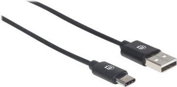 Manhattan - USB-Kabel - USB-C (M) bis USB (M) - USB 2.0 - 3 A - 2 m - geformt - Schwarz (354929)