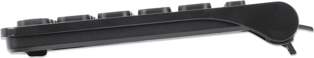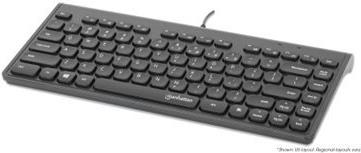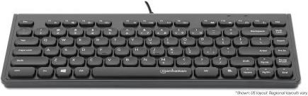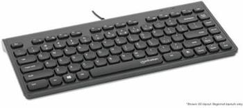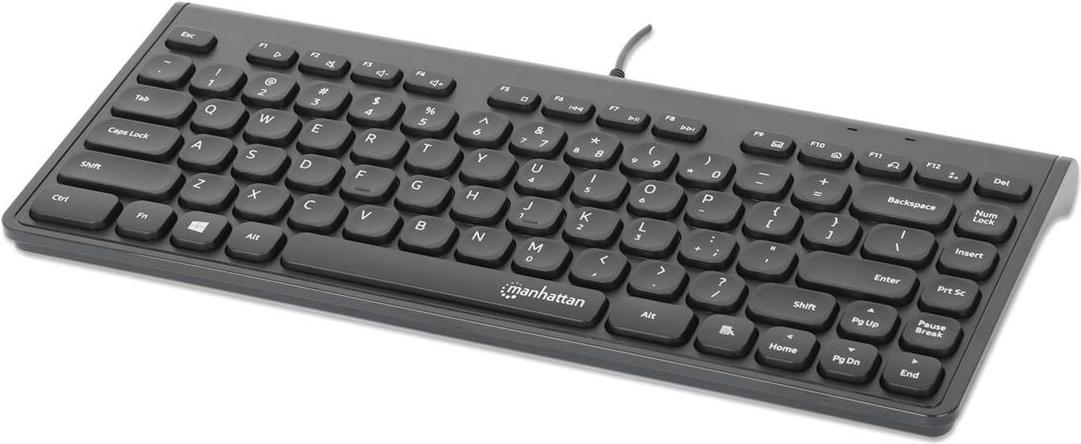 MANHATTAN Kabelgebundene Slim USB Mini-Tastatur 12 Multimedia-/Funktionstasten, integriertes 1,5 m langes USB-A-Kabel, kompaktes, flaches Format, für PC und Laptop, schwarz (180702)