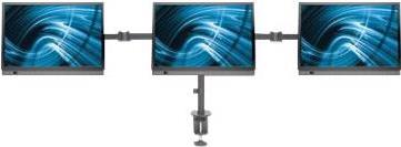 Diese Manhattan Monitorhalterung bietet eine sichere und erhöhte Position für drei Flachbildschirme, um wertvolle Arbeits- und Schreibtischfläche aufgeräumt und frei von Kabelgewirr zu halten. Die schwenk- und neigbare sowie höhenverstellbare Halterung ermöglicht komfortable Positionierung des Displays, was Augen und Nacken schont. Die Bildschirme können einfach um die Stange herum geschwenkt werden, um anderen Nutzern im Raum die Bildschirmansicht zu ermöglichen.