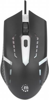 Die Manhattan RGB LED USB Gaming-Maus wird mit Präzision, Ergonomie, Vielseitigkeit und schickem Look zum perfekten Eingabepartner, sei es bei Spielesessions oder Arbeitsanwendungen. Der hochpräzise Sensor mit bis zu 1500 dpi eignet sich dabei für punktgenaues Zielen in Shootern oder filigrane Photoshop-Arbeiten, lässt sich über die Taste auf der Oberseite aber auch dreistufig an den aktuellen Bedarf anpassen. Durch die ergonomische Form sind auch längere Zock-Einlagen ohne Handgelenksermüdung problemlos möglich. Alle vier Tasten auf der rutschfreien, griffigen Oberfläche sind auch mit kleineren Händen gut erreichbar. Im Gegensatz zu Funkmäusen sorgt ein extralanges Kabel mit Ferritkern und Stoffummantelung dafür, dass diesem Nager niemals die Akkuleistung ausgeht. In dunklen Räumen werden die integrierten LEDs zum atmosphärischen Hingucker. Dank Plug-and-Play ist diese Gaming-Maus auf allen Windows -, Mac -, Linux - und Chrome OS-Rechnern sofort einsatzbereit.