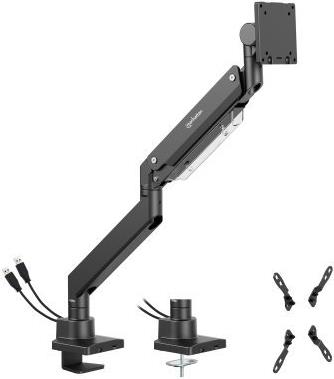 Das IC Intracom Manhattan-Montageset bietet eine solide und vielseitige Lösung für die Montage von LCD-Bildschirmen mit einer Größe von 17 bis 57 Zoll. Dieses aus strapazierfähigem Aluminium gefertigte, robuste Set gewährleistet einen festen Halt und ermöglicht gleichzeitig eine Reihe von Einstellmöglichkeiten, darunter Höhe, Neigung, Schwenkbarkeit und Drehbarkeit. Dank der integrierten Kabelverwaltung können Benutzer Kabelsalat vermeiden, während der USB-Hub eine einfache Verbindung zu verschiedenen Geräten ermöglicht. Das auf dem Schreibtisch montierbare Design macht es ideal für jeden Arbeitsbereich und verbessert die Zugänglichkeit und den Sehkomfort.