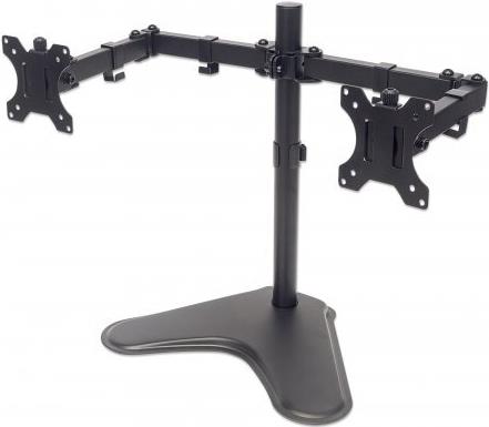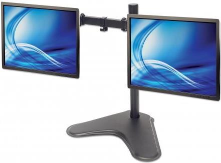 Diese Manhattan Monitorhalterung bietet eine sichere und erhöhte Position für zwei Flachbildschirme, um wertvolle Arbeits- und Schreibtischfläche aufgeräumt und frei von Kabelgewirr zu halten. Die schwenk- und neigbare sowie höhenverstellbare Halterung ermöglicht komfortable Positionierung des Displays, was Augen und Nacken schont. Die LCD-Bildschirme können einfach um die Stange herum geschwenkt werden, um anderen Nutzern im Raum die Bildschirmansicht zu ermöglichen.