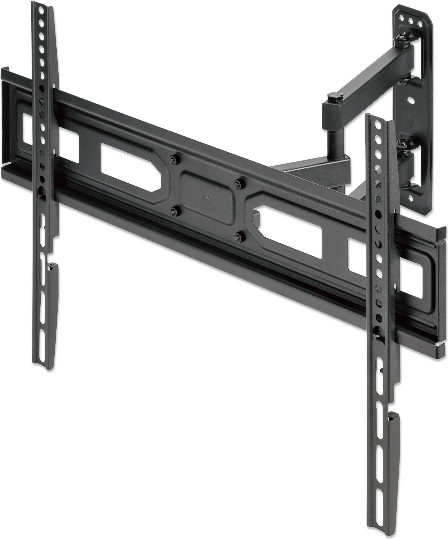 Diese robuste, vollbewegliche TV-Wandhalterung von Manhattan hält Ihren Fernseher sicher an zwei Gelenkarmen und bietet eine optimierte Sicht mit +3 bis -15° Neigung und +/-60° Drehung. Die Halterung eignet sich für flache und gebogene LCD-, OLED- oder Plasma-Fernseher bis zu 70" und einem Gewicht von bis zu 35 kg mit VESA-Konformität bis 600x400. Mit der mitgelieferten Wasserwaage und der +/-3°-Nivellierung, mit der Sie die Halterung perfekt horizontal an der Wand ausrichten können, sind Sie für eine sichere Installation über dem Fußboden gerüstet. Diese Halterung ist ideal für Wohnhäuser, Büros, Gaststätten, Klassenzimmer, Konferenzräume, digitale Beschilderung und andere kommerzielle Anwendungen. Wo auch immer Sie sie anbringen, die universelle Manhattan Full-Motion TV-Wandhalterung stellt das beste TV-Erlebnis in den Mittelpunkt.