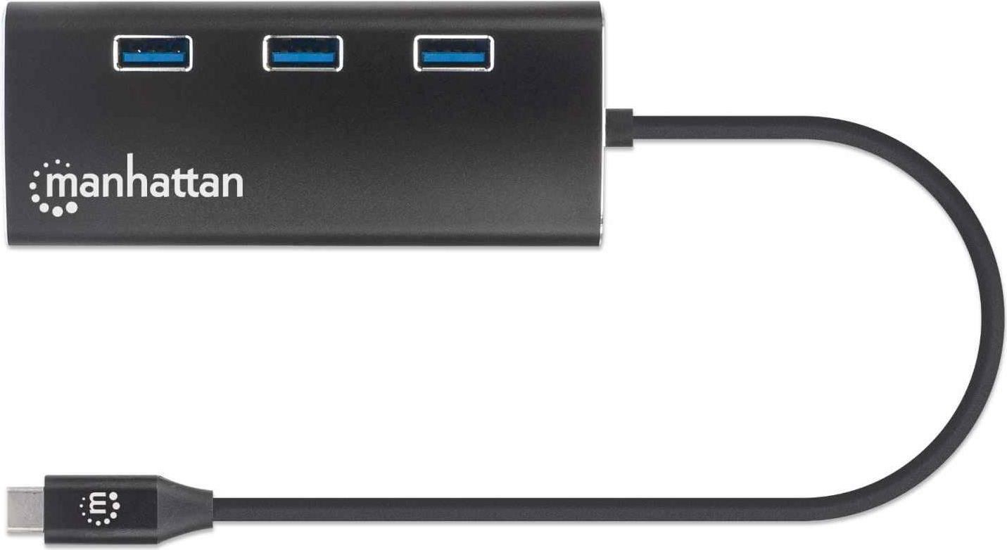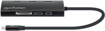 | Produktbeschreibung | Manhattan USB-C Dock/Hub with Card Reader - Ports (x6): Ethernet, HDMI, USB-A (x3) and USB-C, With Power Delivery to USB-C Port (100W), Cable 30cm, Aluminium, Black, Three Year Warranty, Retail Box - Dockingstation - USB-C 3.2 Gen 1 - HDMI - GigE |