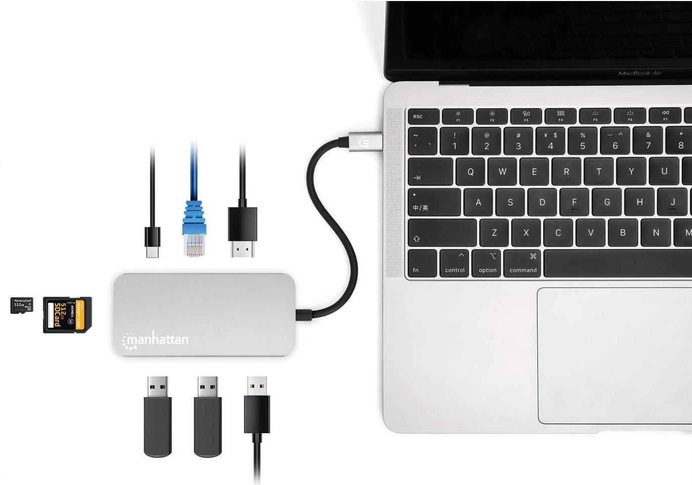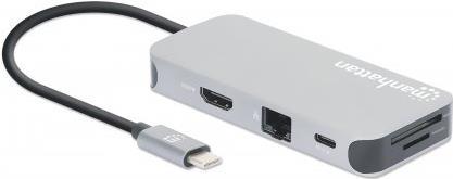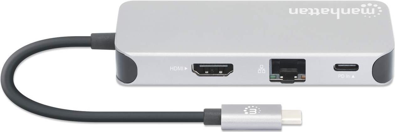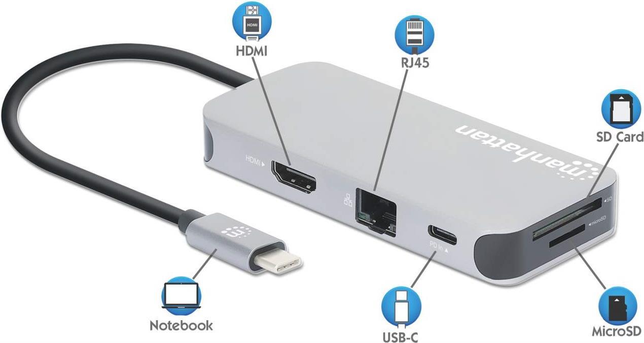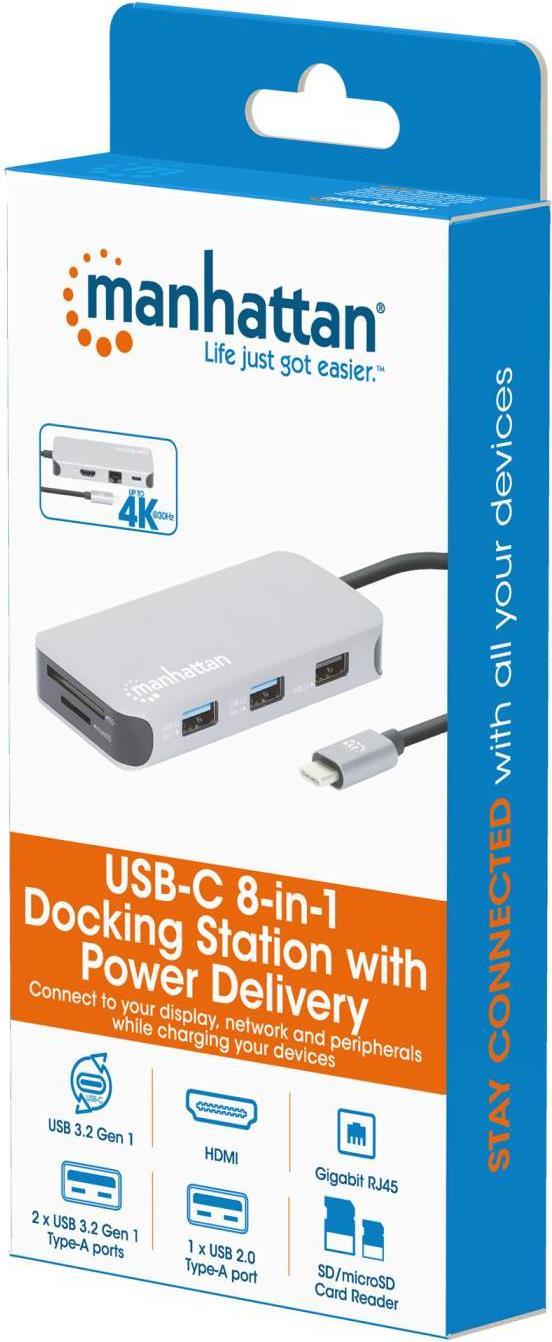Erweitern Sie die Anschlussmöglichkeiten Ihres Geräts mit dem Manhattan USB-C Dock/Hub, einer vielseitigen Ergänzung für Ihr technisches Arsenal. Dieses Dock wurde entwickelt, um die Bedürfnisse von Profis und Technik-Enthusiasten gleichermaßen zu erfüllen. Es verfügt über eine Reihe von Anschlüssen, darunter Ethernet, HDMI, USB-A und USB-C mit Power Delivery, damit Sie eine Vielzahl von Geräten und Peripheriegeräten anschließen können. Ganz gleich, ob Sie in 4K präsentieren, große Dateien übertragen oder einfach nur Ihre Geräte aufladen möchten - mit dieser Dockingstation sind Sie bestens gerüstet. Das robuste Aluminiumdesign und die kompakte Größe machen es zu einem idealen Begleiter für die Arbeit oder auf Reisen, während die integrierten Kartenleser-Slots eine weitere Funktionsebene für Fotografen und Content-Ersteller hinzufügen. Mit einer dreijährigen Garantie ist diese Dockingstation eine langfristige Investition in Ihre Produktivität.