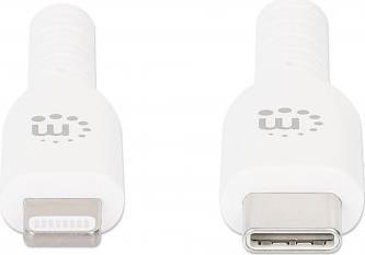 MANHATTAN USB-C auf Lightning Sync-/Ladekabel USB-C-Stecker auf Apple® MFi-zertifizierten 8-pol. Lightning-Stecker, 2 m, für iPhone® / iPad® / iPod®, 480 Mbit/s, weiß (394529)