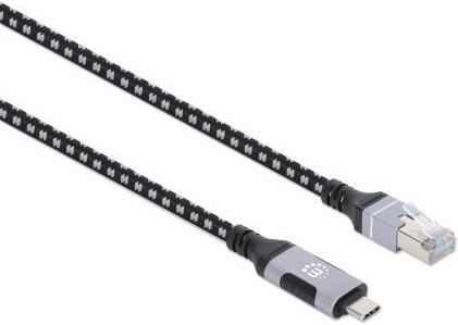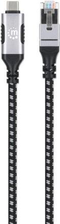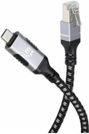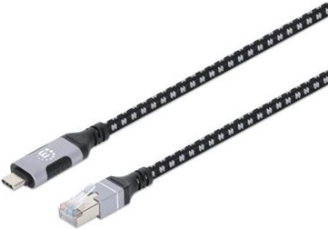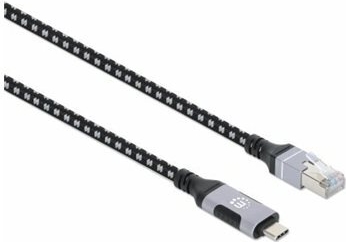 Die Konstruktion des Kabels umfasst einen geflochtenen Nylonmantel und eine Zugentlastung, die seine Langlebigkeit gegen Verschleiß erhöht. Das IC Intracom Manhattan-Netzwerkkabel arbeitet effektiv in Temperaturbereichen von 0 °C bis 45 °C und bietet eine stabile Verbindung für verschiedene Anwendungen. Seine männlichen RJ-45- und USB-C-Stecker bieten Vielseitigkeit und machen es zu einer geeigneten Wahl für Benutzer, die eine zuverlässige Leistung in ihrer Netzwerkkonfiguration benötigen.