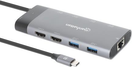 MANHATTAN USB-C PD 10-in-1 Dual-Monitor 8K Dockingstation / Multiport-Hub USB 3.2 Gen 2 Typ C-Stecker auf zwei HDMI-Ports (bis zu 8K@30Hz), fünf USB-A-Ports (bis zu 10 Gbit/s), USB-C Power Delivery-Port (85 W), USB-C-Datenport (10 Gbit/s) und Gigabit-RJ45-Port, Aluminium, Space Grau (130714)
