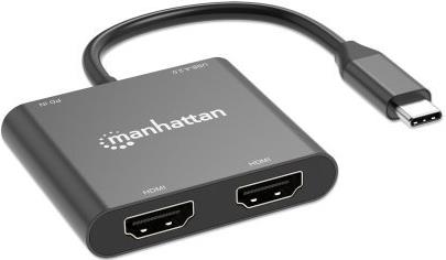 Der Manhattan 154321 Videoadapter unterstützt eine maximale Ausgabeauflösung von 4K und sorgt so für lebendige Bilder, egal ob er an ein Tablet oder einen Laptop angeschlossen ist. Mit einer Bildwiederholfrequenz von 60 Hz gewährleistet dieser Adapter eine flüssige und dynamische Bildschärfe für alle Arten von Medien. Er verfügt über ein robustes Aluminiumgehäuse und unterstützt dank Multi Stream Transport (MST) mehrere Monitore, was die Produktivität und das Unterhaltungserlebnis verbessert. Die USB-Power-Delivery-Funktion ermöglicht ein effizientes Energiemanagement mit einer Leistung von bis zu 100 W bei einer Datenrate von 480 Mbit/s und gewährleistet so nahtlose Konnektivität und Leistung in verschiedenen Konfigurationen.