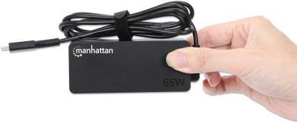 MANHATTAN USB-C Power Delivery Laptop-Netzteil 65 W abnehmbares EU-Stromkabel integriertes USB-C PD-Kabel schwarz (102490)