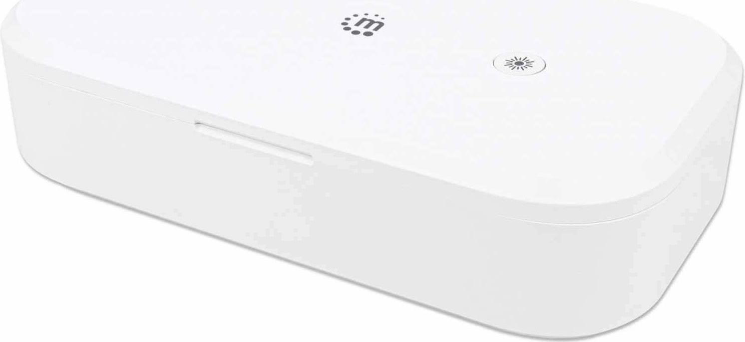 Manhattan UV Phone Sanitizer (Clearance Pricing), Integrated UV LEDs to eliminate germs, viruses and bacteria, Quick 1-minute or 5-minute cleaning cycle, Auto-off UV light when opened, White, Three Year Warranty, Retail Box - UV-Desinfektionskammer für Handy - weiß (425384)
