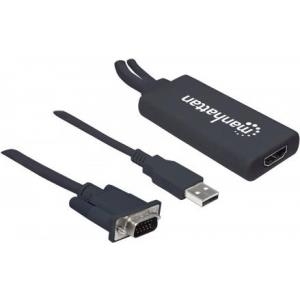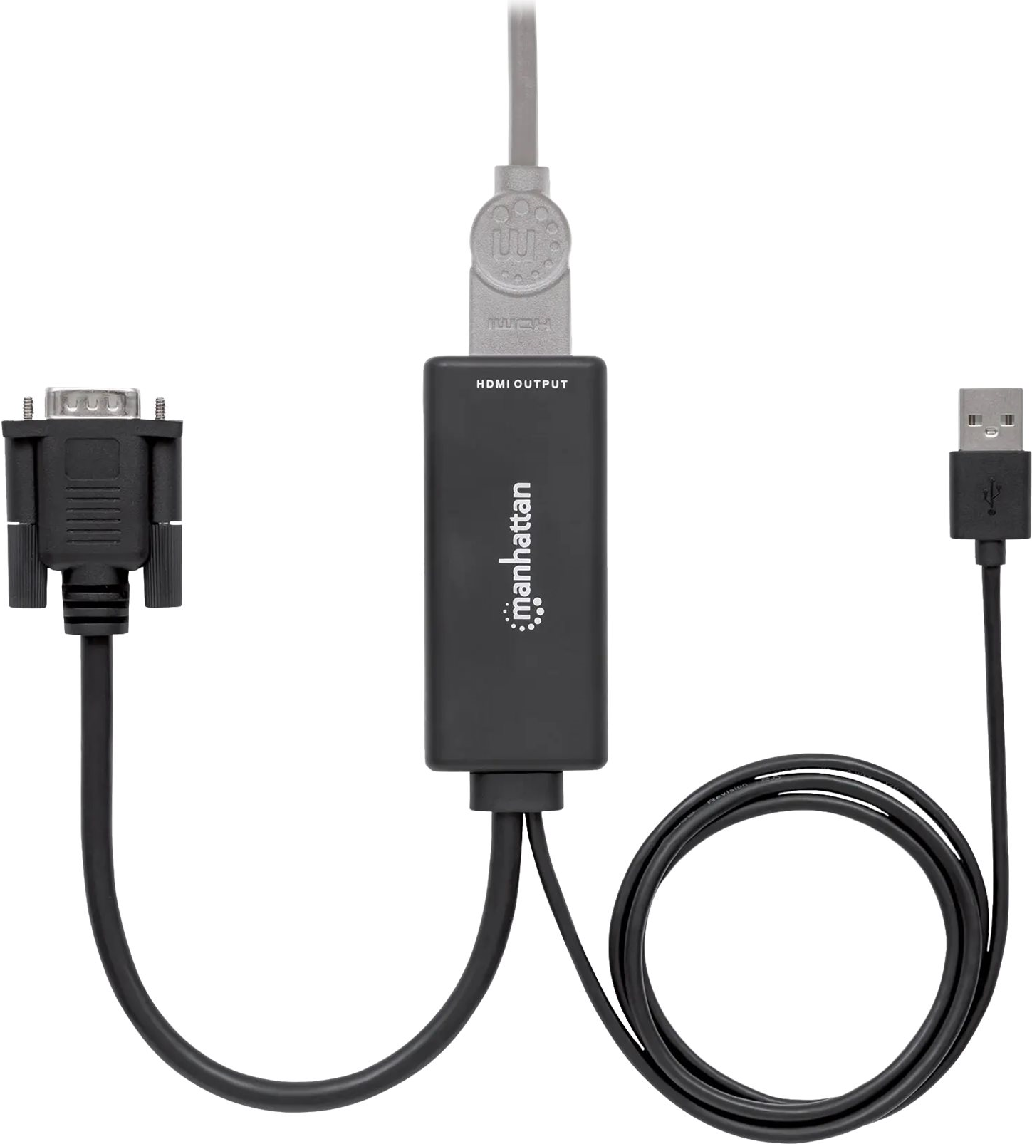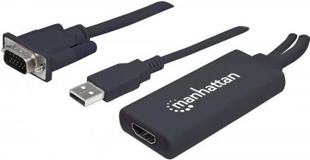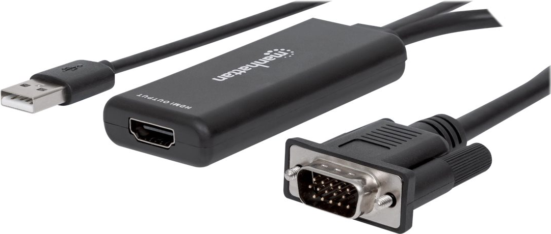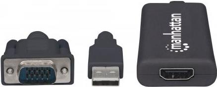 Konvertiert analoge Audio/Video-Signale von einem PC in ein digitales HDMI-Signal. Sie haben einen PC ohne HDMI-Port, aber möchten ihn per HDMI-Kabel an ein Display oder an einen Beamer anschließen? Der Manhattan VGA und USB auf HDMI-Konverter macht diese Verbindung mit schnellem Plug&Play zum Kinderspiel. Durch die Kombination aus VGA und USB bleiben die Lautsprecher Ihres Displays dabei nicht stumm, sondern werden gleichzeitig mit dem Audiosignal bespielt. Die hohe Bandbreite dieses Konverters ermöglicht dabei eine Auflösung von 1920 x 1080 (1080p) bei 60 Hz, zudem ist er kompatibel mit Windows- und Mac-Systemen.