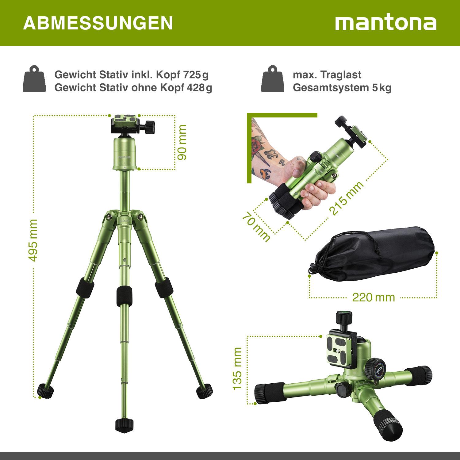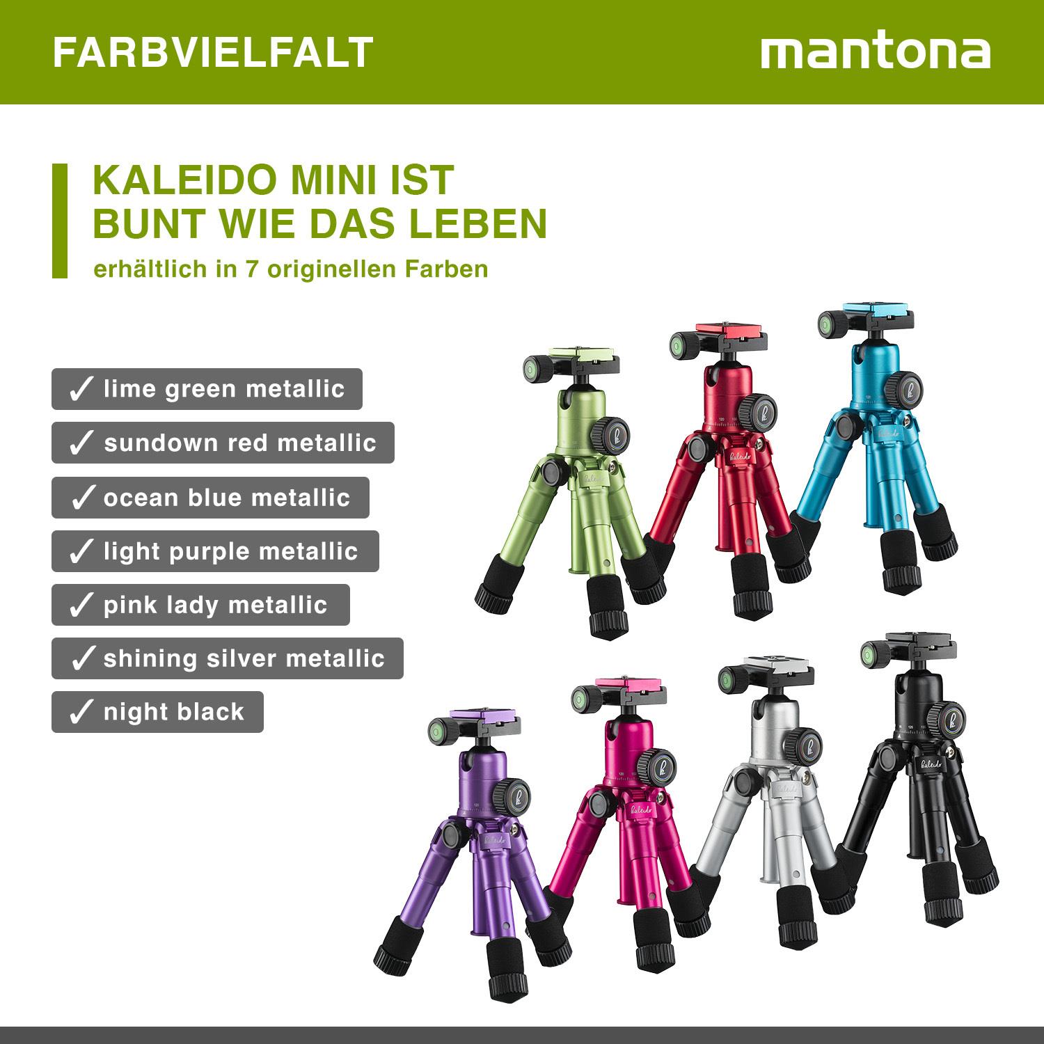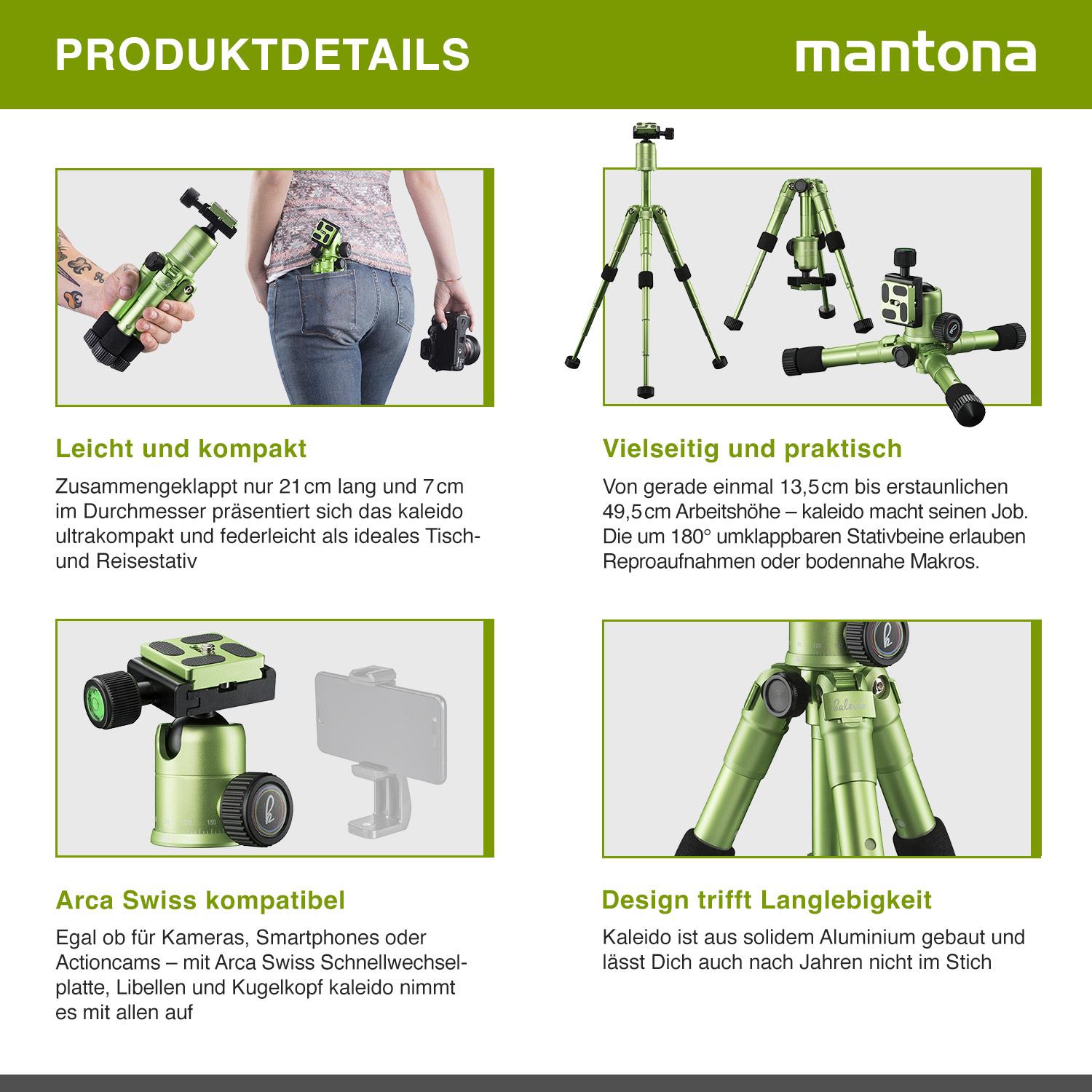 Walimex Mantona 21186 kaleido mini Foto-/Tisch- und Travelstativ inkl. Kugelkopf mit Schnellwechselplatte und Transporttasche lindgrün/metallic (1021186)