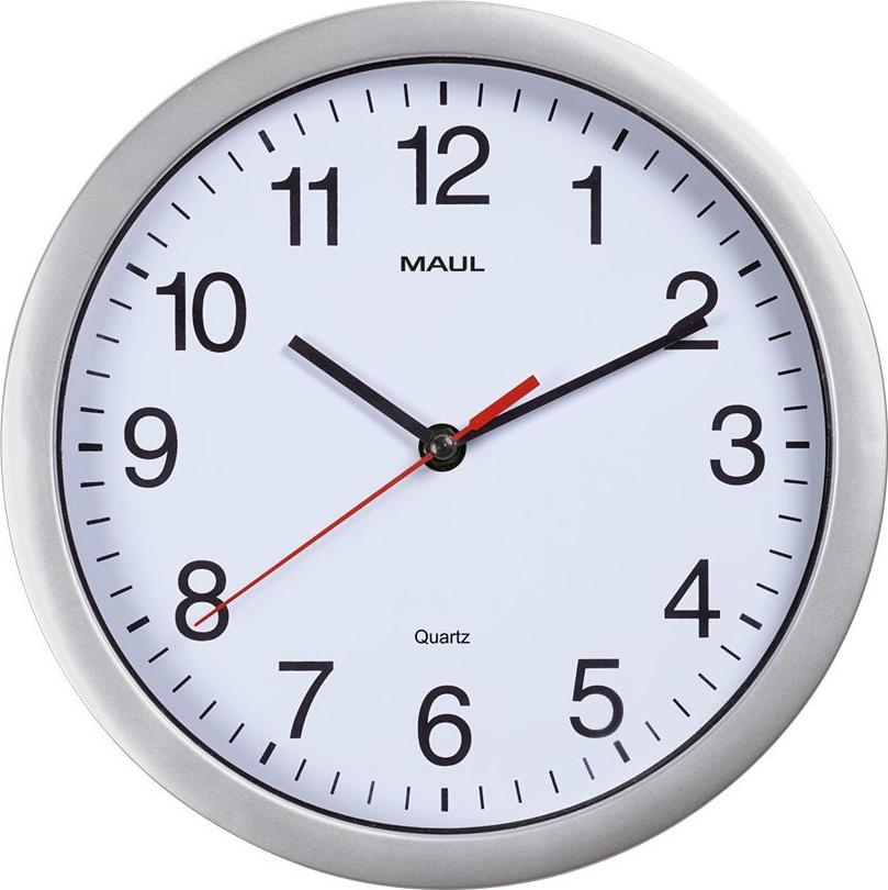 MAUL Wanduhr/Quarzuhr MAULrun, Durchmesser: 250 mm, silber Batteriebetrieb, inkl. 1x Mignon AA, Rahmen aus bruchfestem - 1 Stück (9052695)