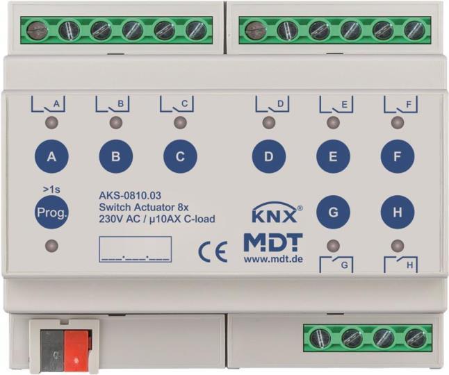 MDT AKS-0810.03 Schaltaktor 8fach 6TE REG 10A 230VAC C-Last Standard 140 µF (AKS-0810.03)