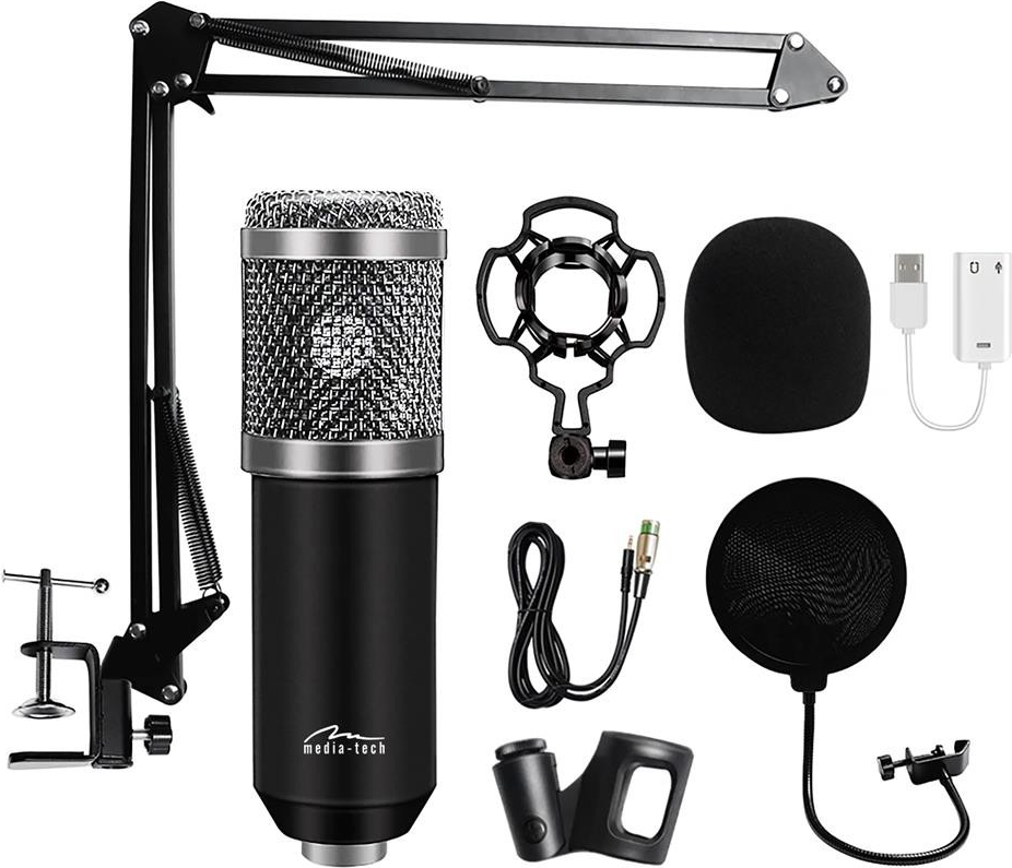 MEDIA-TECH MIKROFON POJEMNOSCIOWY KIERUNKOWY Z ZESTAWEM AKCESORIÓW SREBRNY MT397S (MT397S)