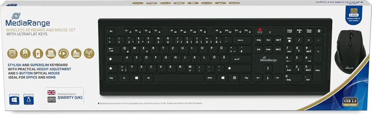 MediaRange MROS104 - Tastatur-und-Maus-Set - kabellos - QWERTY - GB - Grau, Schwarz (MROS104UK)