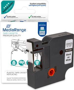 MediaRange - Laminiert - permanenter Klebstoff - Schwarz auf Weiß - Rolle (1,2 cm x 7 m) 1 Kassette(n) Etikettenband (MRDY45013)