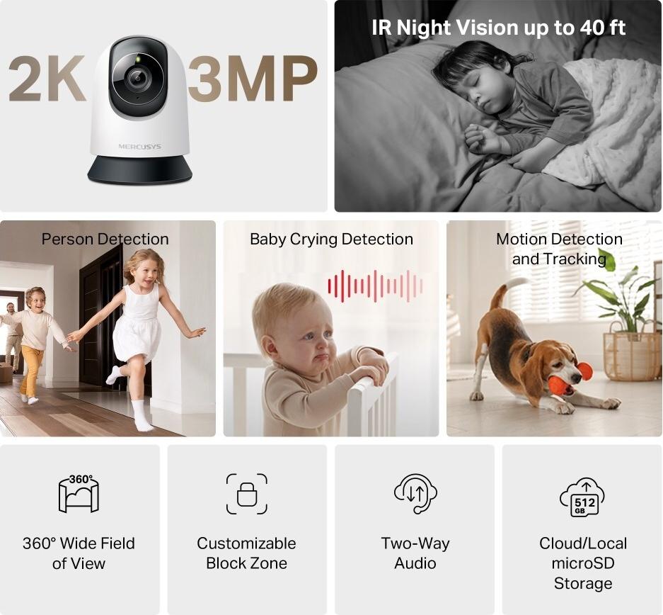 • Mercusys MC210 Pan/Tilt Home Security Wi-Fi Camera (MC210)