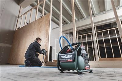 Metabo 601521850. Motorschnelligkeit der Pumpe (max): 2760 U/min, Maximaler Betriebsdruck: 8 bar, Kapazität des Luftbehälters: 5 l. Energiequelle: Batterie/Akku. Breite: 340 mm, Tiefe: 315 mm, Höhe: 380 mm (601521850)
