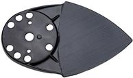 Mit Kletthaftung auf der Unterseite. Auf der Oberseite kann die mitgelieferte selbstklebende Folie mit Kletthaftung aufgeklebt werden, damit auch oben ein Haftschleifblatt angebracht werden kann.