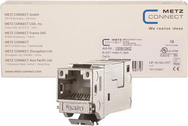 METZ CONNECT E-DAT modul Keystone Cat.6A Jack 180°, 12er VPE (130910KZ)