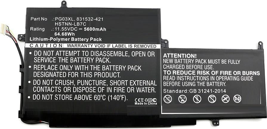 CoreParts - Laptop-Batterie - Lithium-Polymer - 5600 mAh - 64,7 Wh - Schwarz - für HP Spectre x360 Laptop 15-ap011dx (MBXHP-BA0065)