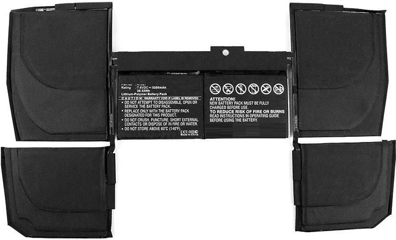 | Äquivalenter OEM-Akku | Apple A1534, Apple MF855, Apple MF855C/A, Apple MF855LL/A, Apple MF865LL/A, Apple MJY32, Apple MJY32LL/A, Apple MK4M2, Apple MK4M2LL/A, Apple MLHA2LL/A, Apple MLHC2LL/A, Apple 661-02245, Apple 818-01746, Apple 020-8504, Apple 821-2646, Apple A1527, Apple FQM6 |