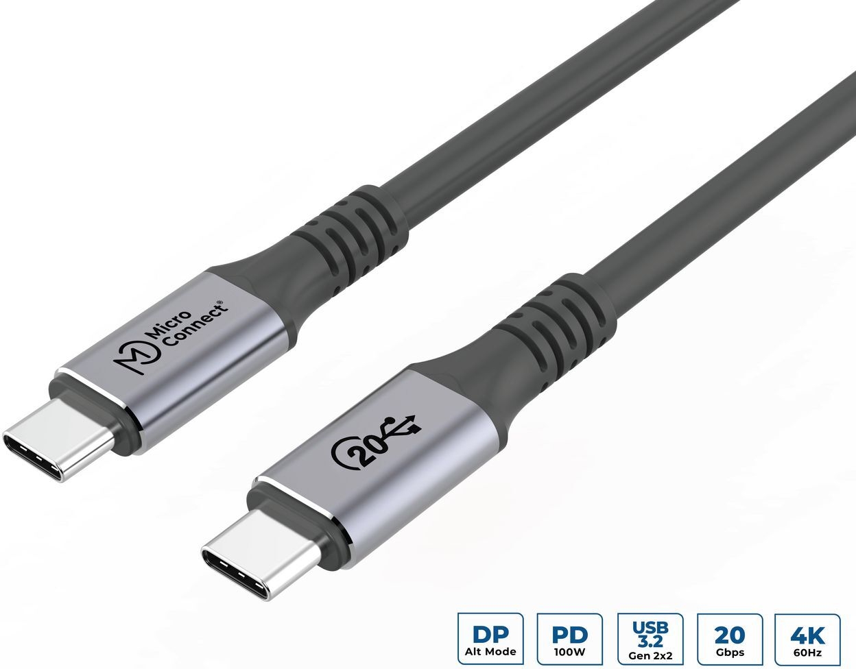 • MicroConnect Premium USB-C 3.2 Gen 2x2 cable 100W 20Gbps 6m (MC-USBCC6)