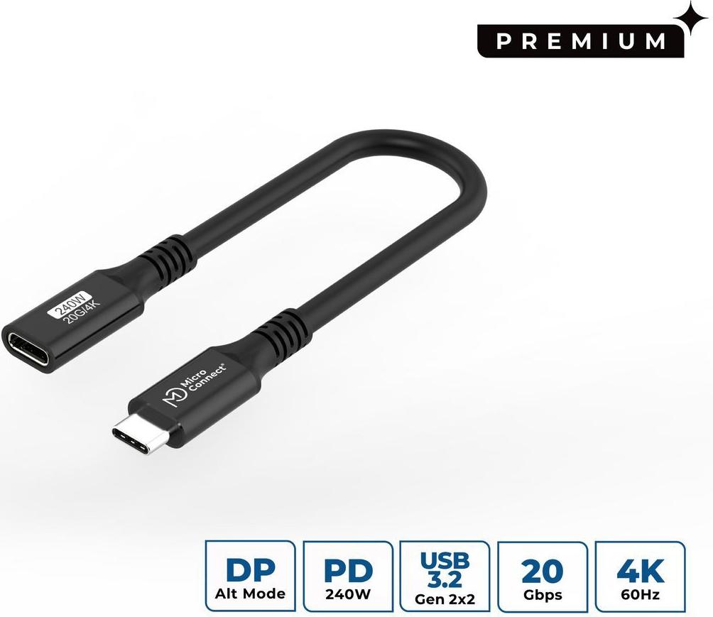 • MicroConnect Premium USB-C cable Extender 20Gbps 240W USB 3.2 (USB3.2CC015EX)