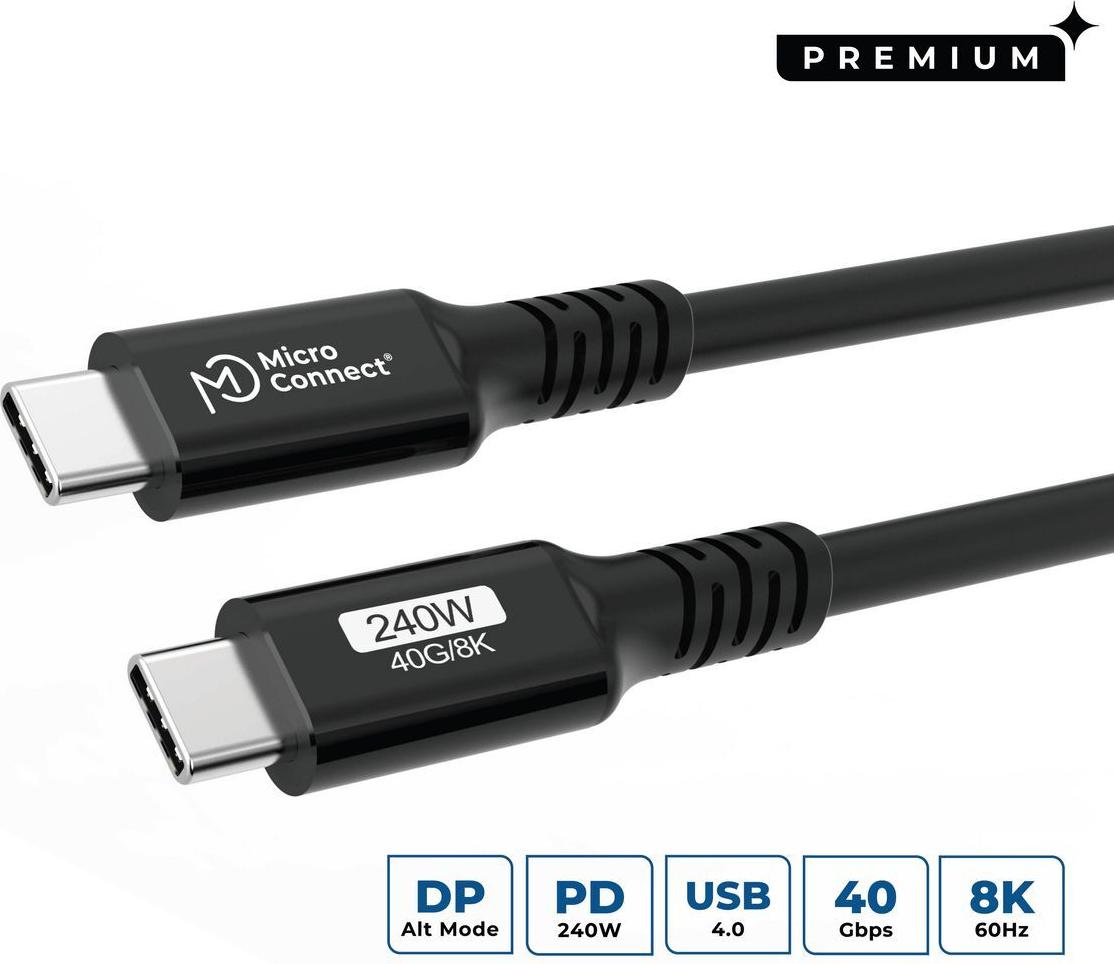 MicroConnect - USB-Kabel - 24 pin USB-C (M) zu 24 pin USB-C (M) - USB4 Gen3x2 5 A - 1,5m - Schwarz (USB4CC15-240W)
