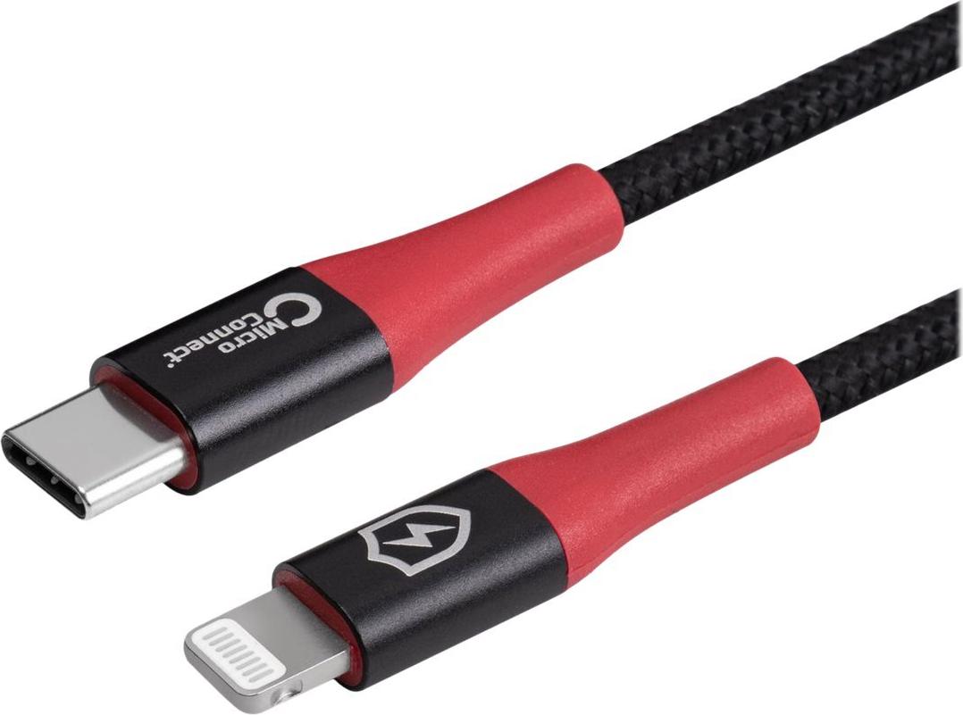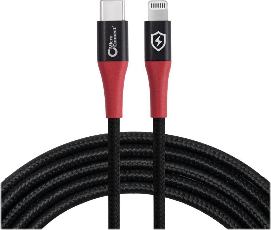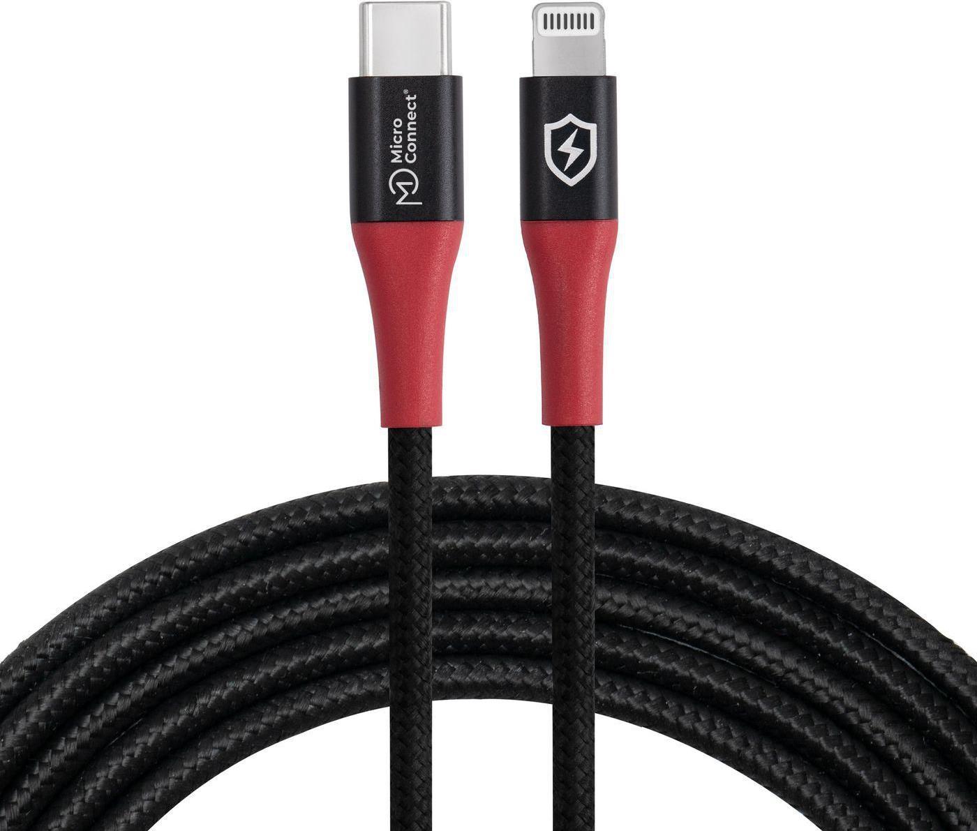 MicroConnect - Lightning-Kabel - 24 pin USB-C männlich zu Lightning männlich - 1,5m - Doppelisolierung - Schwarz, Rot - Safe Charge, Data Blocker (MC-CLIGHTNING-SC)