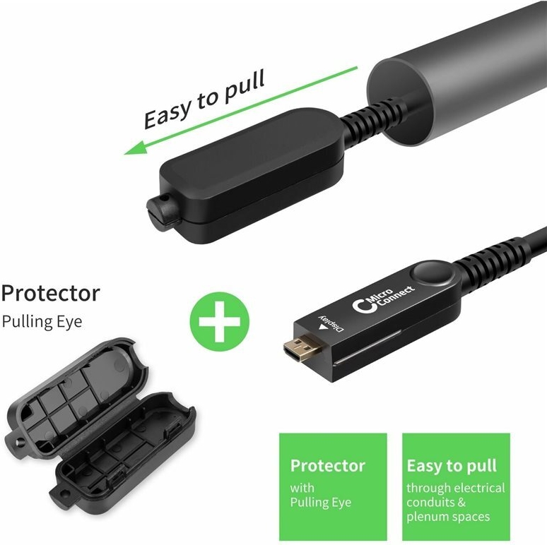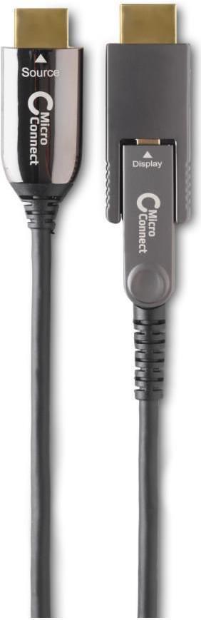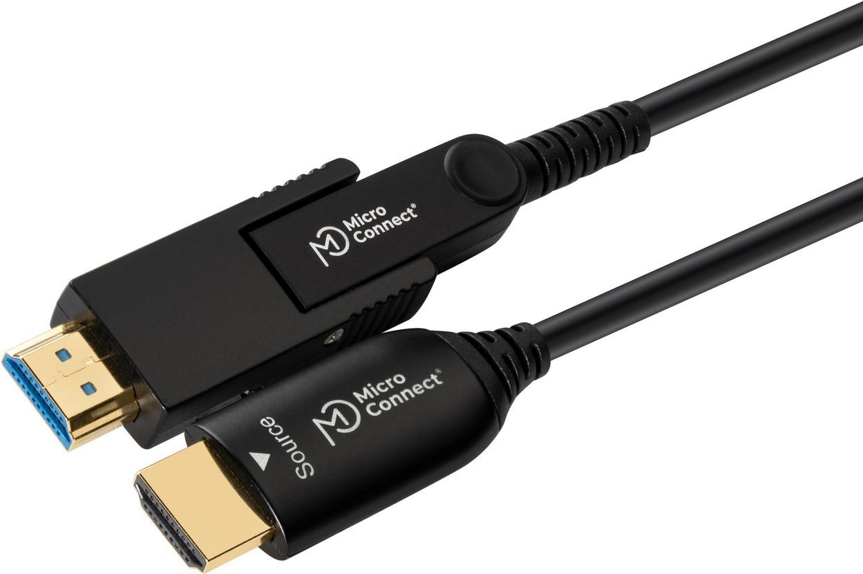 Dieses aktive optische HDMI 2.0 A zu HDMI 2.0 Typ D Kabel verbindet Geräte über lange Distanzen bis zu 100m ohne Datenverlust – selbst in sensiblen Anwendungen. Es enthält sowohl Glasfaser- als auch Kupferkerne, ist leicht, flexibel und hat einen ultra-kleinen Biegeradius, was es perfekt für alle Arten von Installationen macht. Ein HDMI Typ A Adapter ist enthalten, sodass es auch als HDMI Typ A zu HDMI Typ A verwendet werden kann.