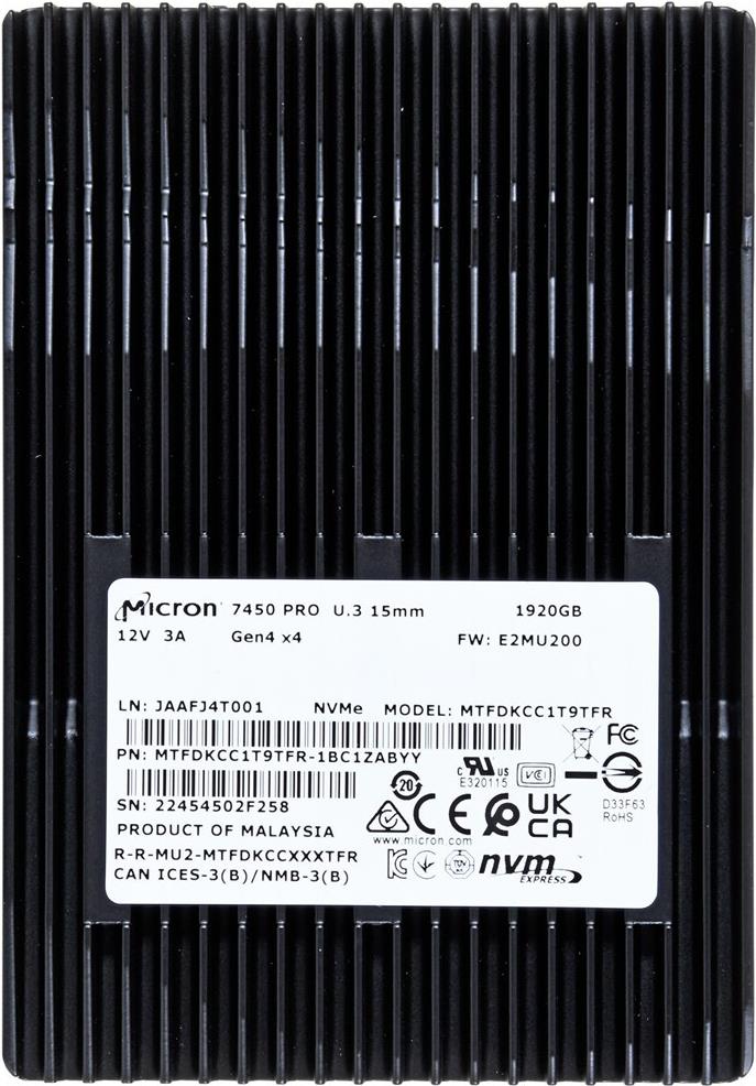 Micron 7450 PRO 1920GB NVMe U.3 (15mm) Non-SED (MTFDKCC1T9TFR-1BC1ZABYYR)