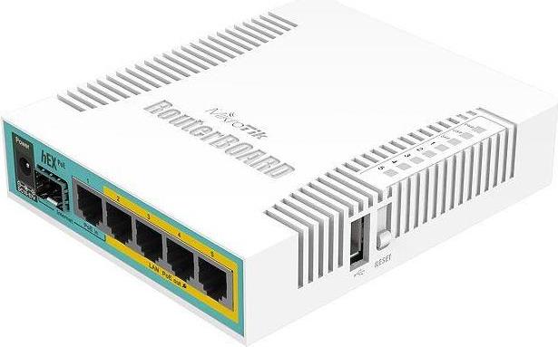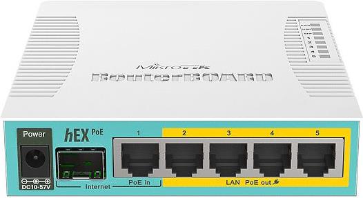 MikroTik hEX PoE ist ein Gigabit-Ethernet-Router mit 5 Ports, für all jene Standorte, wo keine WLAN-Verbindung benötigt wird. Das Gerät verfügt über einen USB-2.0-Port und einen SFP-Schacht, für die zusätzliche Möglichkeit der Glasfaserkonnektivität. Die Ports 2-5 können über PoE-Output andere PoE-fähige (802.3at) Geräte mit derselben, angelegten Voltanzahl passiv mit Strom versorgen. Dies bedeutet im Endeffekt weniger Stromadapter und Kabel und somit weniger Verschleißteile.