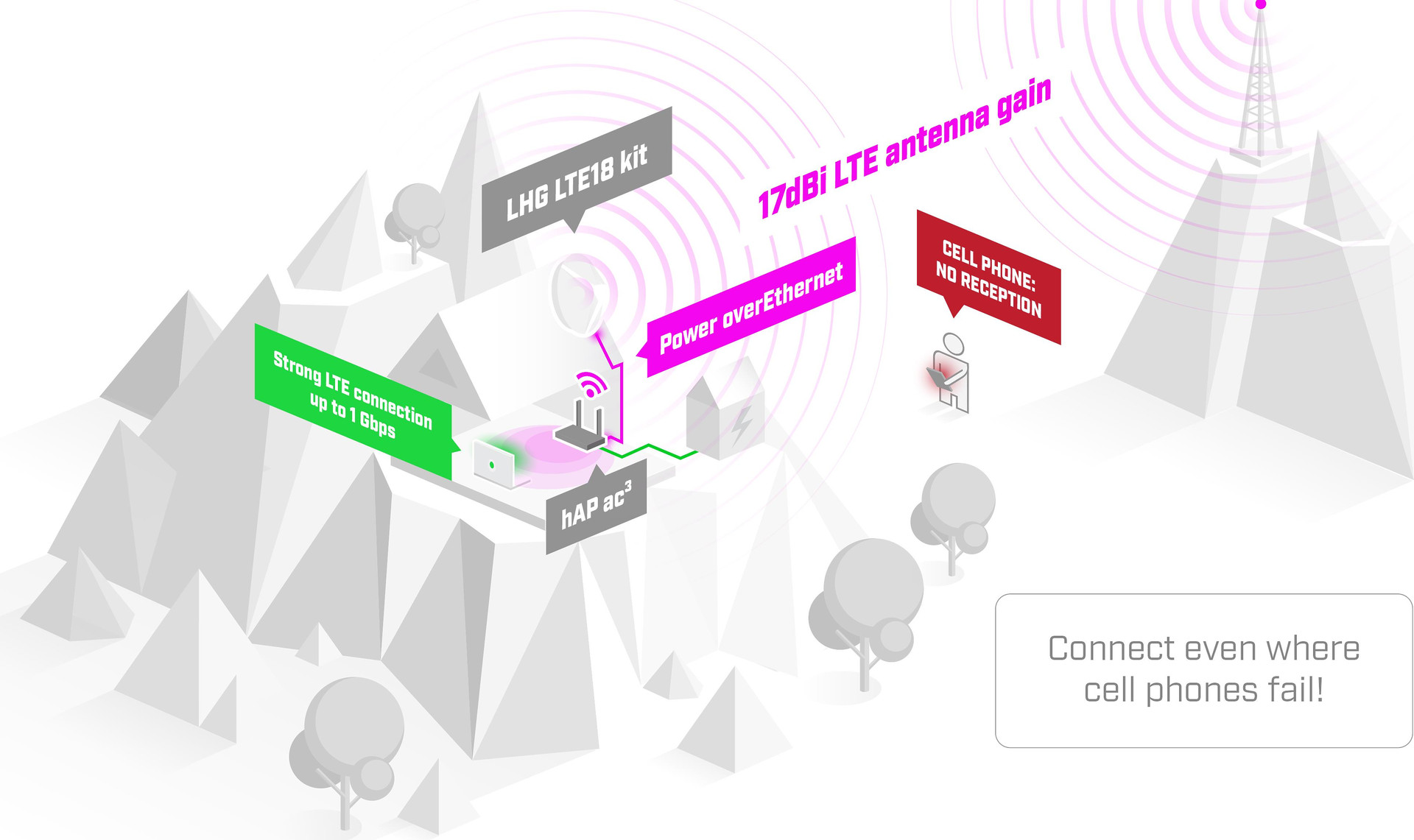 Mikrotik LHG LTE18 kit Mobilfunksignalverstärker für den Außenbereich Weiß (LHGGM&EG18-EA)