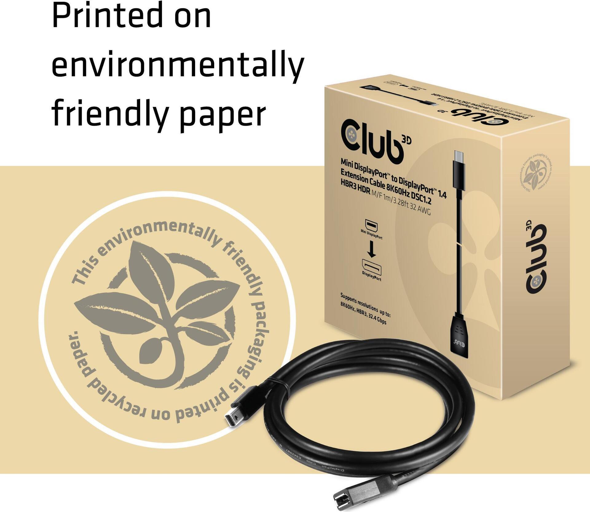 Club 3D - DisplayPort-Verlängerungskabel - Mini DisplayPort (M) bis DisplayPort (W) - DisplayPort 1,4 - 1,0m - 8K Unterstützung (CAC-1121)