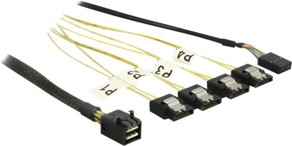 Mini SAS HD SFF-8643 an 4x SATA 7 Pin Reverse + Sideband, 0,5m, Delock® [83320] (83320)